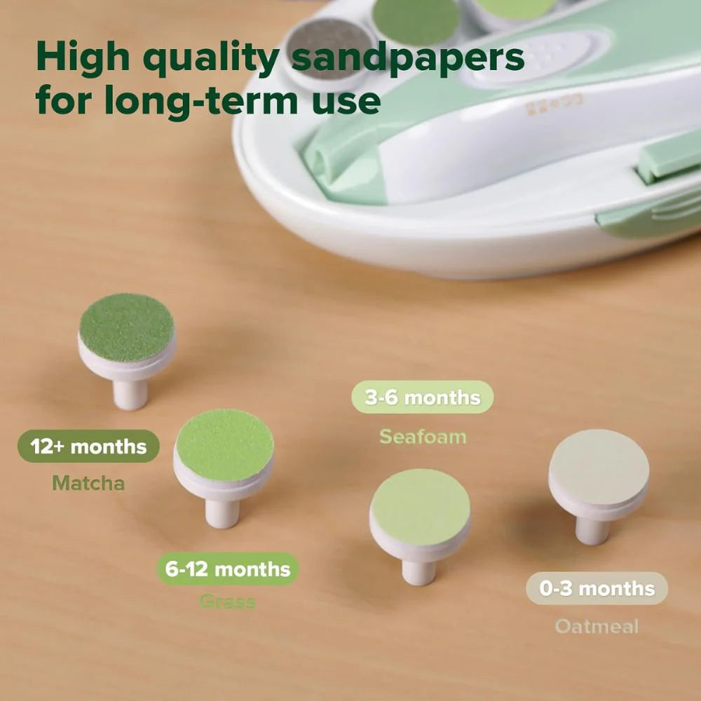 Haltu naglasnyrtisettinu gangandi með varapúðum! Naglasnyrtisettið gerir þér kleift að móta neglur barnsins á öruggan hátt, án skæra eða beittra áhalda.