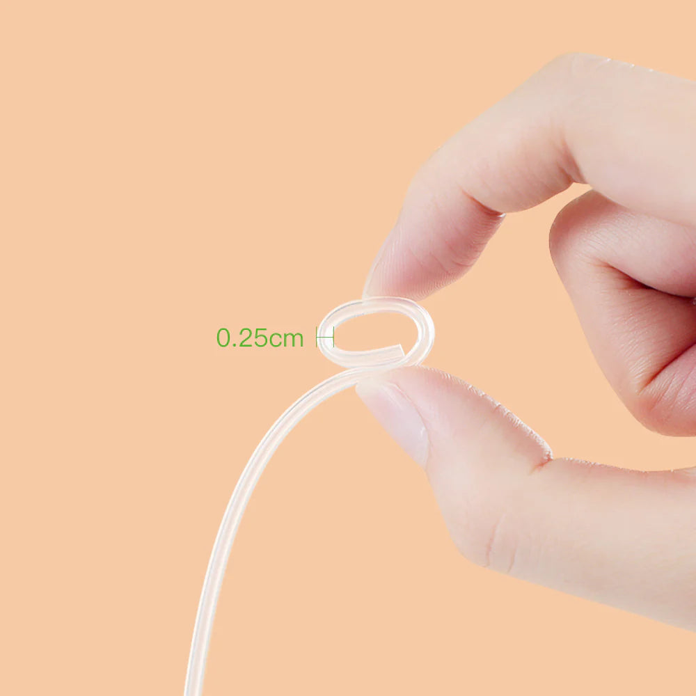 The flow of milk can be carefully controlled by adjusting the strength of your grip on the Gen. 3 Baby Bottle (sold separately), or by using the flow controller for a more consistent rate. Our Silicone Feeding Tube works seamlessly with our Haakaa Gen. 3 Silicone Baby Bottles and X-Shaped Variable Flow Nipples (sold separately) but can also be used with any other baby bottle equipped with an X-shaped variable flow nipple. Simply place the bottle in an elevated position higher than the end of the outlet tube to start the flow of milk.